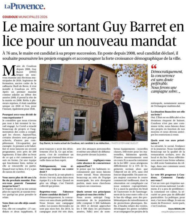 À Coudoux, nous avons fait un choix simple et cohérent.Nous faisons campagne sous le label des Maires de Provence. Ce label n’est pas une étiquette partisane, c’est une 𝗱𝗲́𝗺𝗮𝗿𝗰𝗵𝗲 𝗽𝗮𝗿𝘁𝗮𝗴𝗲́𝗲 par des maires de terrain, venus d’horizons différents, mais réunis… Lire la suite → |
